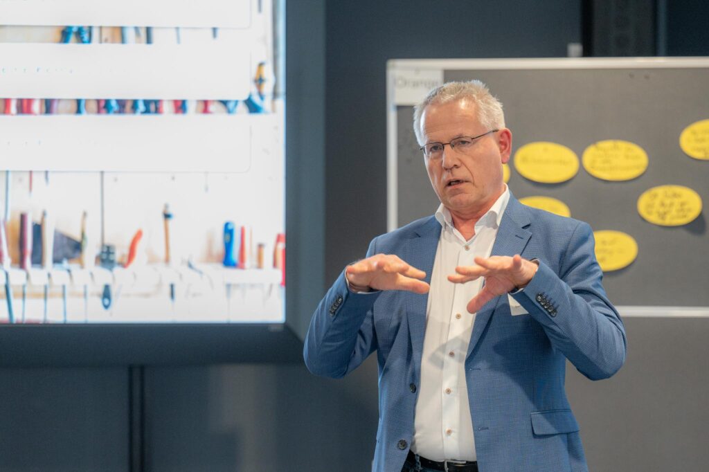 Ein wichtiger Programmpunkt der Auftaktveranstaltung war der Impulsvortrag zu Wasserstofftechnologien, in dem Justus Beste die Anwendungsmöglichkeiten und die technischen Grundlagen zur Nutzung von Wasserstoff erläuterte. In verschiedenen Kleingruppen konnten die Unternehmerinnen und Unternehmer ihre Ziele und Erwartungen an das Projekt „Wasserstoffallianz Westfalen“ formulieren. „Es ist wichtig, dass wir miteinander ins Gespräch kommen – und dass wir im Laufe des weiteren Weges im Gespräch bleiben. Vieles geht nur zusammen“, sagte Reinhard Bartsch, Geschäftsführer des Wasserstoffzentrums Hamm und der Stadtwerke Hamm GmbH, im Rahmen der Feedback-Runde.